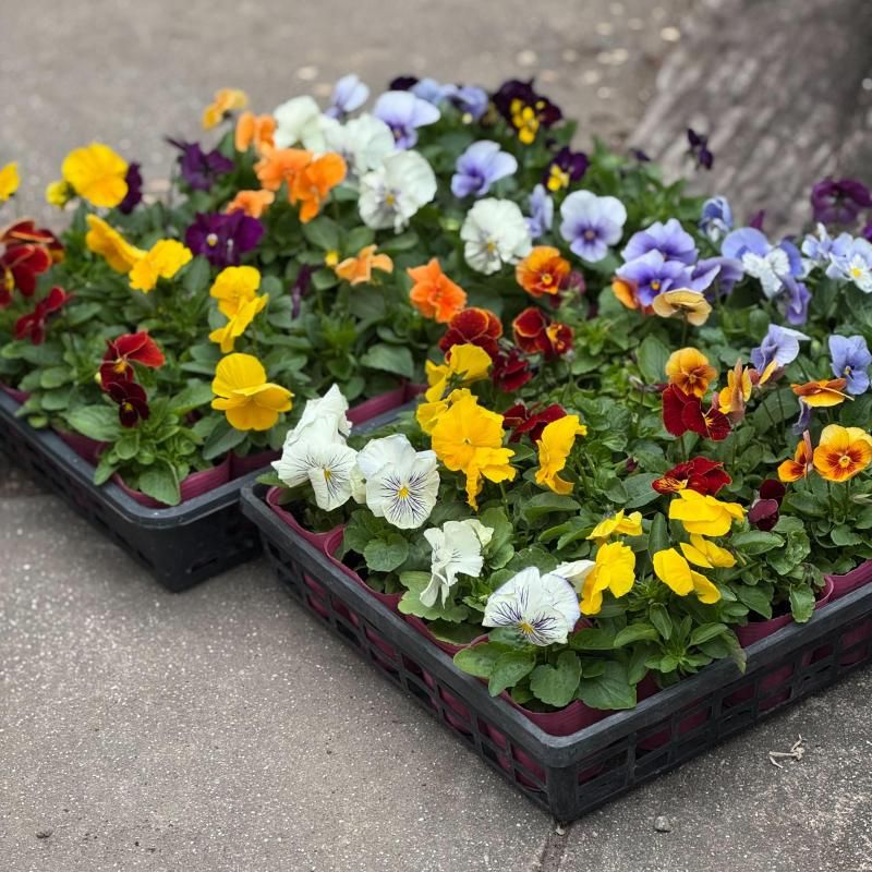一般品種のパンジーが、56苗入りケースで登場しました。 色はおまかせですが、その分お得にお楽しみいただけます。